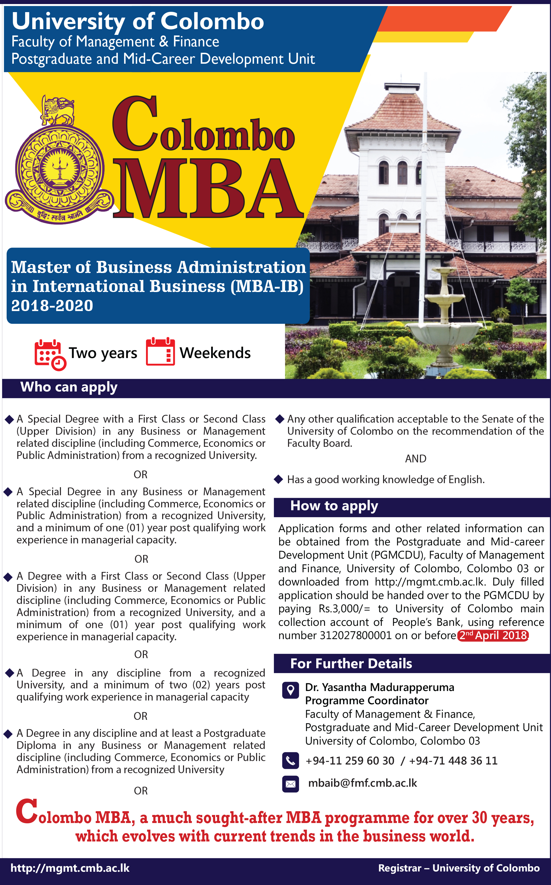 Master of Business Administration in International Business (2019-2021) CLOSING DATE EXTENDED TILL 11th APRIL 2019