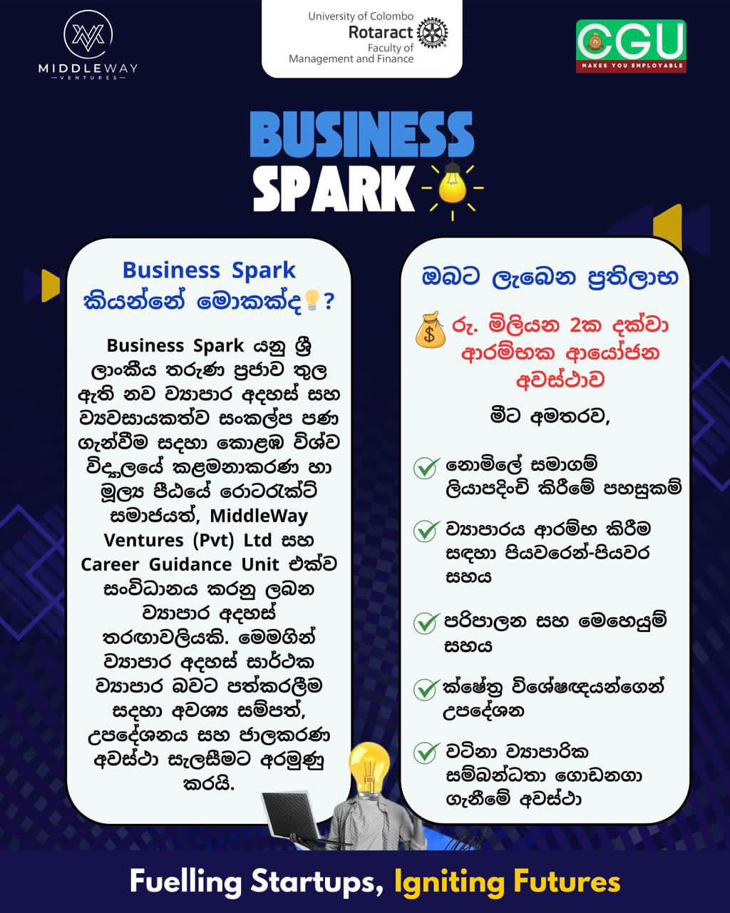Business Spark 2026, the 2nd All-Island Business Idea Competition—one of the flagship events of the Faculty of Management and Finance, University of Colombo, organized in collaboration with Middleway Ventures—is reaching its most exciting moment.