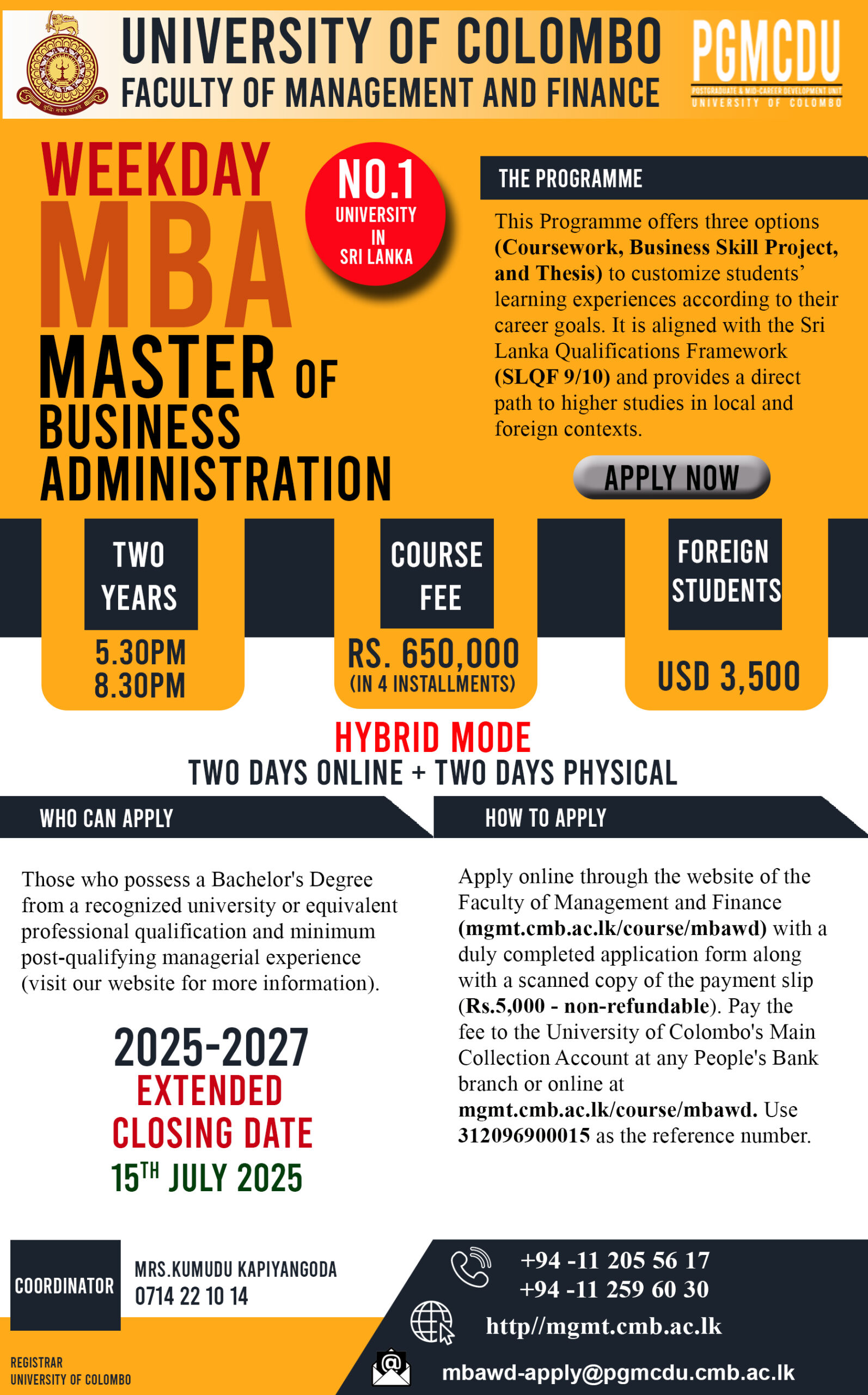 More Info: MBA WeekDay WEBSITE Categories MBA WD More Info: MBA WeekDay WEBSITE Related Course Master of Business Administration (MBA) Weekday Programme 2025-2027