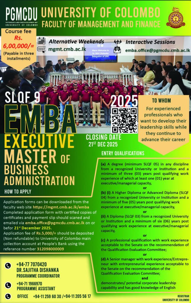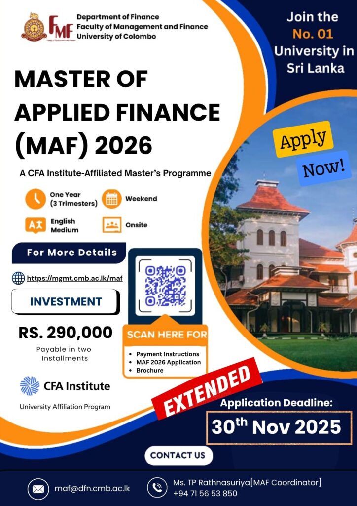 ๐“๐ก๐ž ๐€๐ฉ๐ฉ๐ฅ๐ข๐œ๐š๐ญ๐ข๐จ๐ง ๐ƒ๐ž๐š๐๐ฅ๐ข๐ง๐ž ๐„๐ฑ๐ญ๐ž๐ง๐๐ž๐!!! The Department of Human Resources Management, Faculty of Management and Finance, University of Colombo is offering a ๐‚๐ž๐ซ๐ญ๐ข๐Ÿ๐ข๐œ๐š๐ญ๐ž ๐‚๐จ๐ฎ๐ซ๐ฌ๐ž ๐ข๐ง ๐‡๐‘ ๐€๐ง๐š๐ฅ๐ฒ๐ญ๐ข๐œ๐ฌ ๐Ÿ๐ŸŽ๐Ÿ๐Ÿ“ Apply on or before: ๐“๐ก๐ž ๐š๐ฉ๐ฉ๐ฅ๐ข๐œ๐š๐ญ๐ข๐จ๐ง ๐๐ž๐š๐๐ฅ๐ข๐ง๐ž ๐ก๐š๐ฌ ๐›๐ž๐ž๐ง ๐ž๐ฑ๐ญ๐ž๐ง๐๐ž๐ ๐ฎ๐ง๐ญ๐ข๐ฅ ๐Ÿ๐Ÿ“๐ญ๐ก ๐๐จ๐ฏ๐ž๐ฆ๐›๐ž๐ซ ๐Ÿ๐ŸŽ๐Ÿ๐Ÿ“. Applications are accepted only through online mode. More on web: https://mgmt.cmb.ac.lk/chra-2025   Don’t miss […]